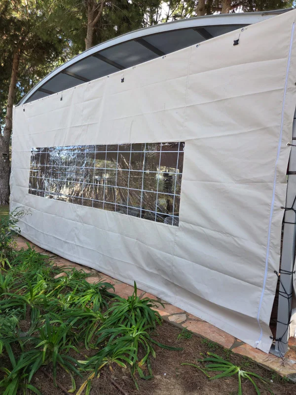 סגירת חורף לפרגולה בשמשונית שקופה או ברזנט איכותי מאפשרת המשך שימוש בנוחות מלאה – עם עמידות גבוהה, פתחים מאווררים וחלונות גלילה לפי הצורך.